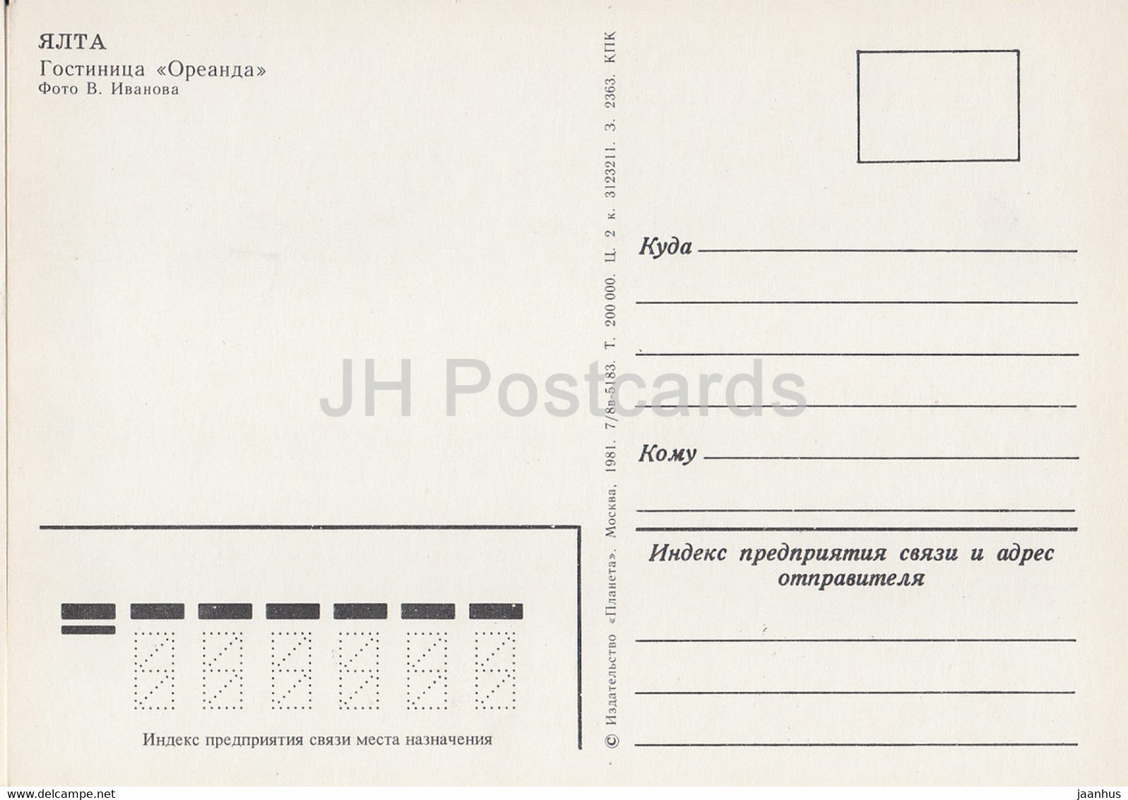 Yalta - hôtel Oreanda - Crimée - 1981 - Ukraine URSS - inutilisé