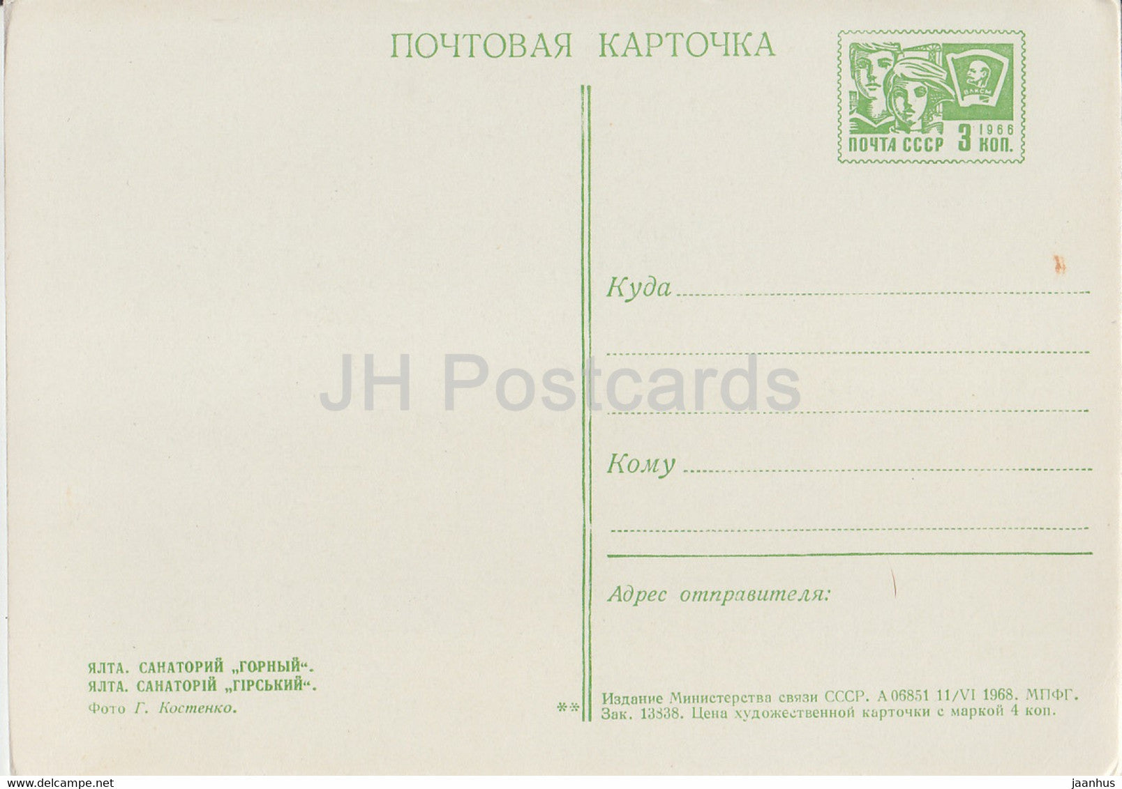 Yalta - sanatorium Gornyi - Crimée - entier postal - 1968 - Ukraine URSS - inutilisé