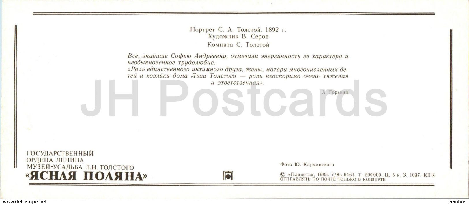 Iasnaïa Poliana - Musée Tolstoï - portrait de l'épouse de l'écrivain par V. Serov - chambre de l'épouse - 1985 - Russie URSS - inutilisé