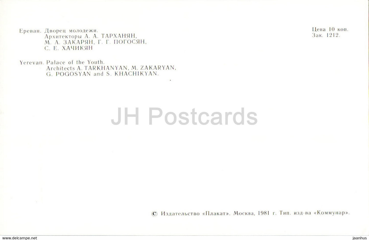 Erevan - Palais de la Jeunesse - 1981 - Arménie URSS - inutilisé