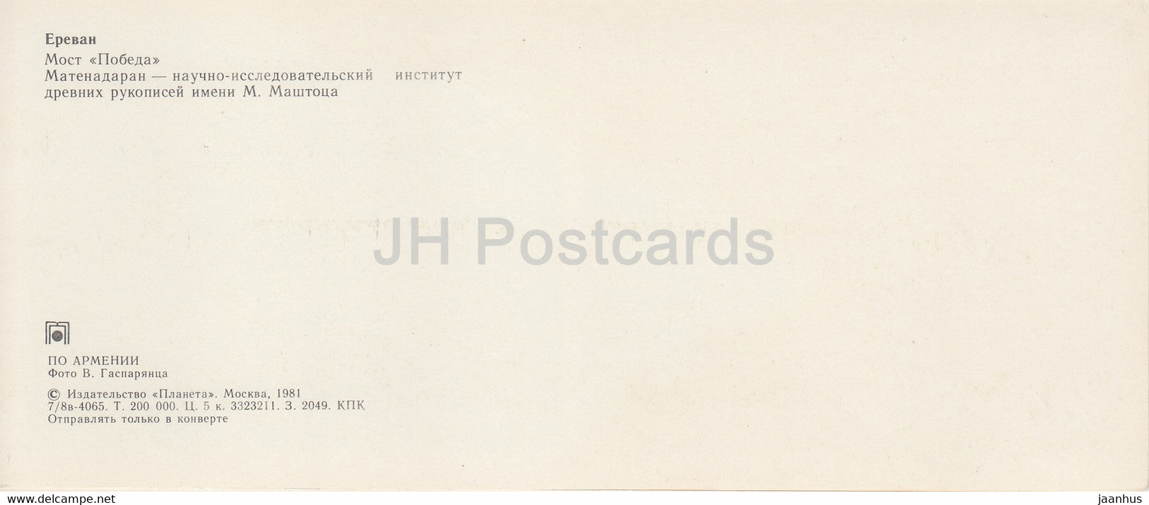 Erevan - Pont Pobeda - Matenadaran - Institut des manuscrits anciens - bus Ikarus - 1981 - Arménie URSS - inutilisé