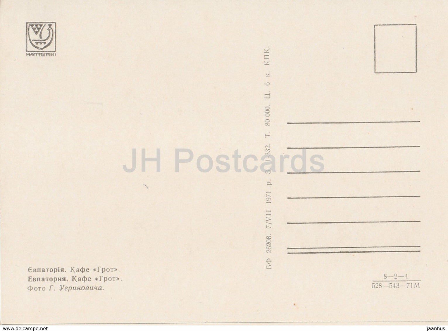 Eupatoria - Evpatoria - Café Grotto - Crimée - 1971 - Ukraine URSS - inutilisé