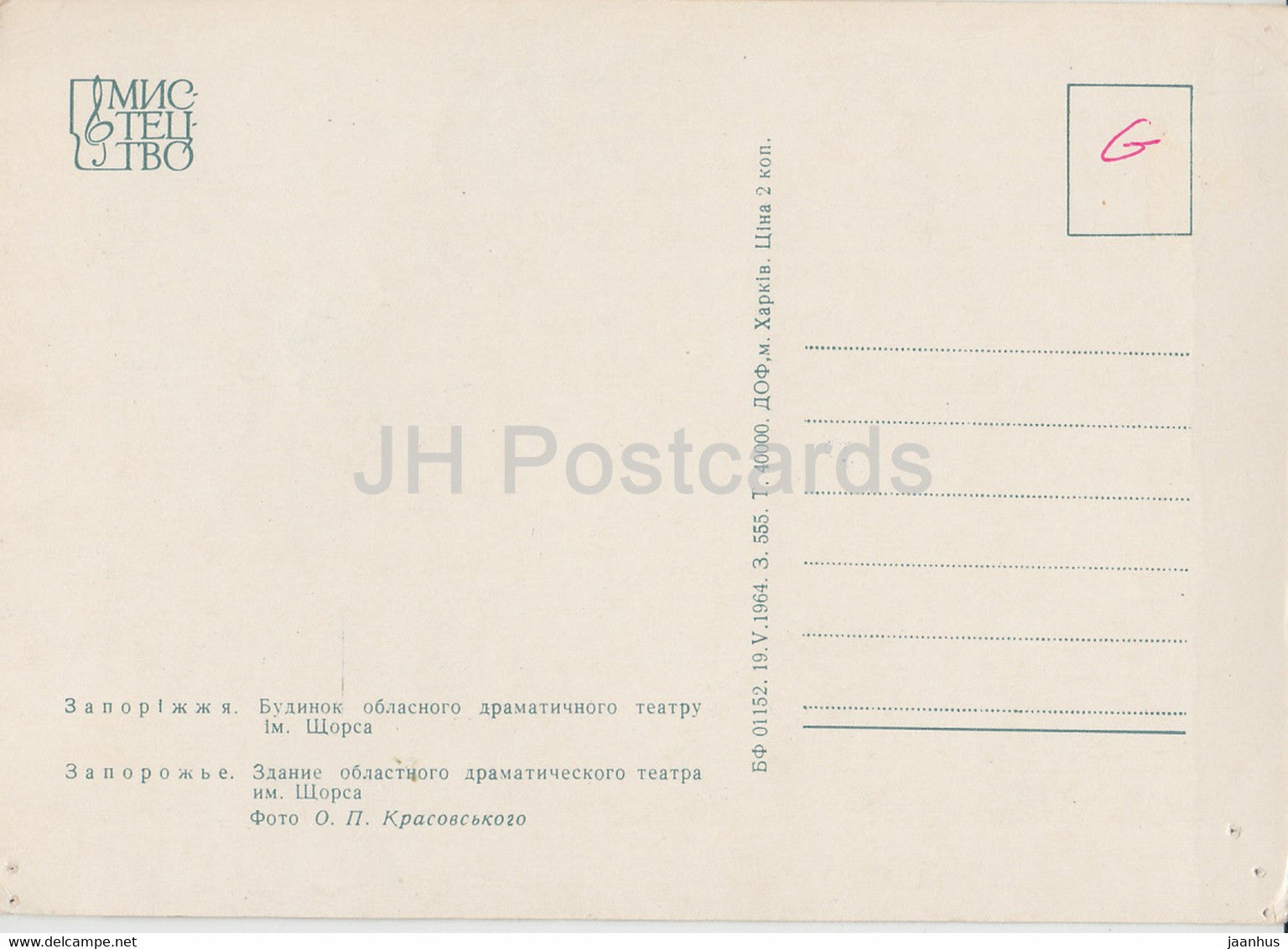 Zaporizhzhia - Théâtre dramatique régional - 1964 - Ukraine URSS - inutilisé