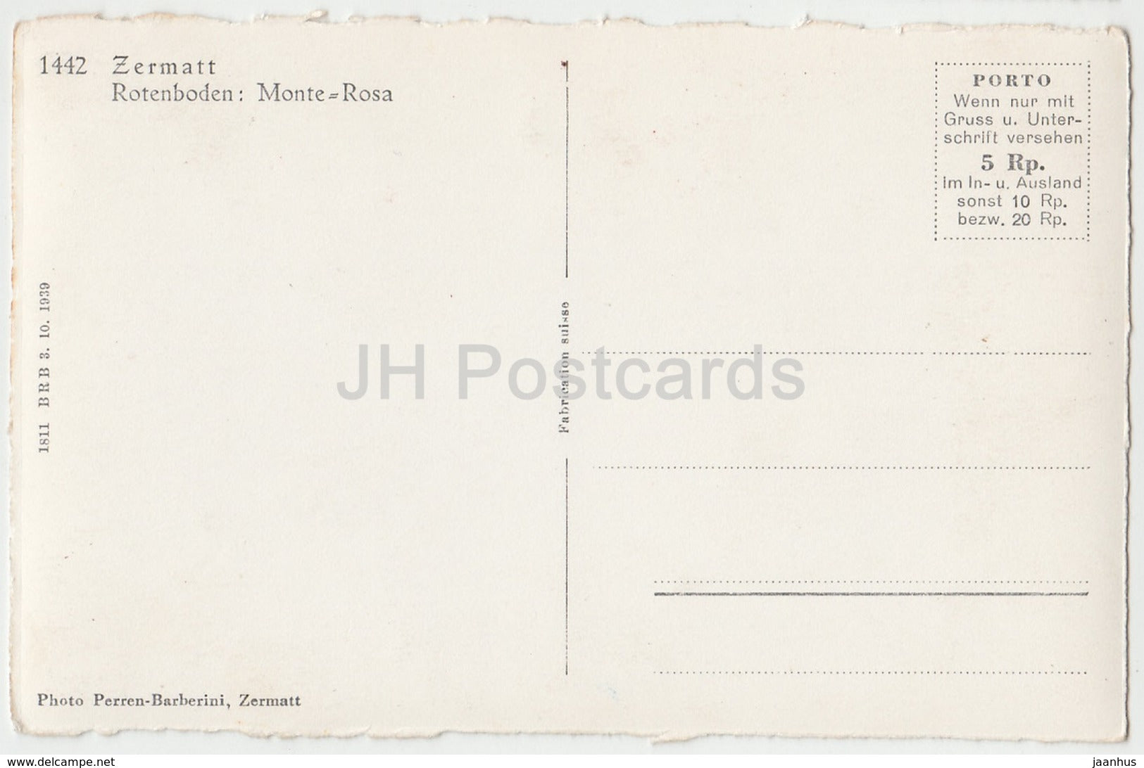 Zermatt Rotenboden - Monte Rosa - 1442 - Suisse - carte postale ancienne - inutilisée