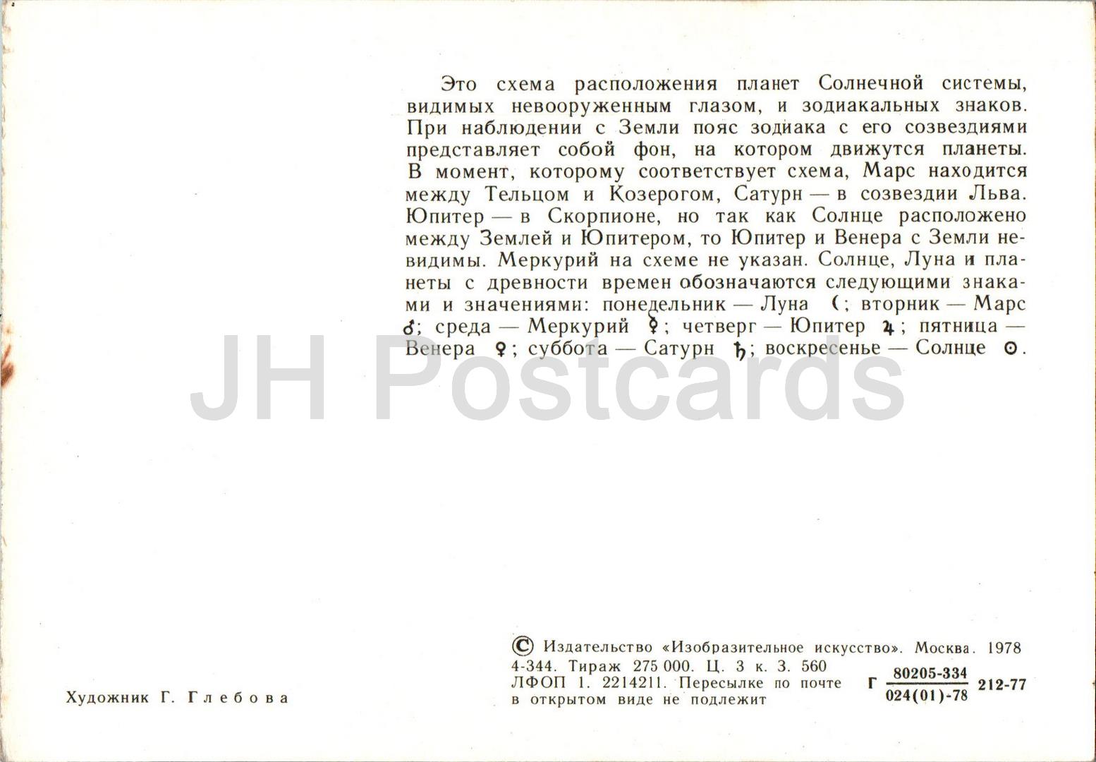 Signes du zodiaque - Planètes du système solaire - astronomie - 1978 - Russie URSS - inutilisé