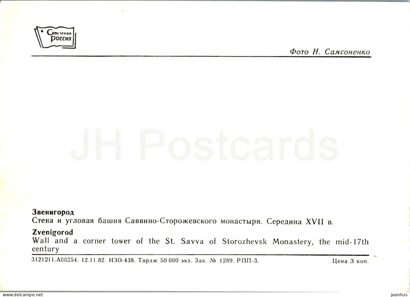 Zvenigorod - Mur et tour d'angle du monastère Saint-Savva de Storozhevsk - 1983 - Russie URSS - inutilisé