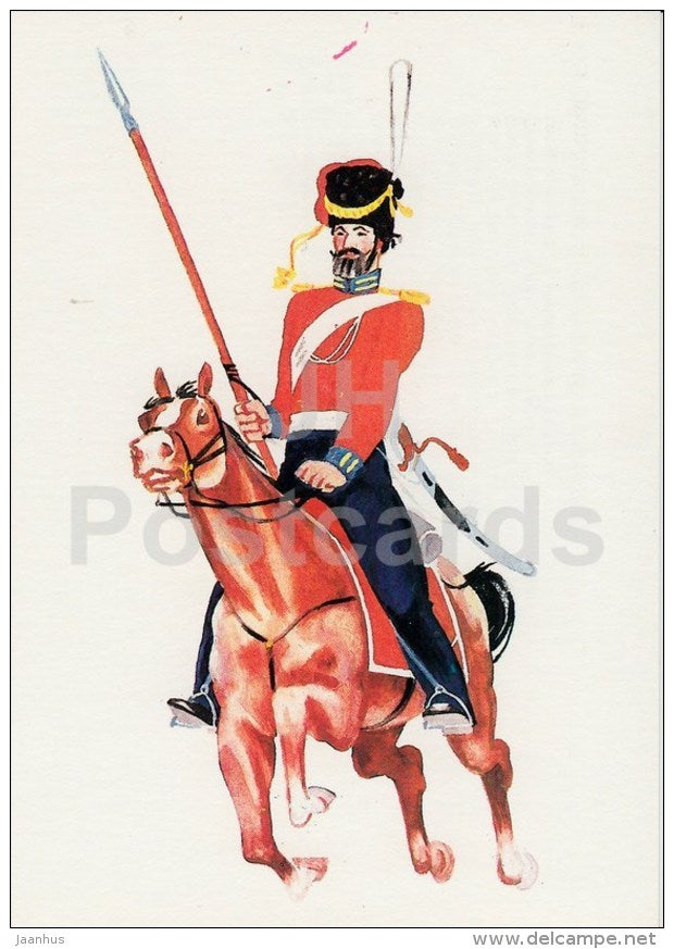 15 - soldier - horse - illustration by V. Pertsov - In Terrible Times. 1812 nove by Bragin - Russia USSR - 1989 - unused