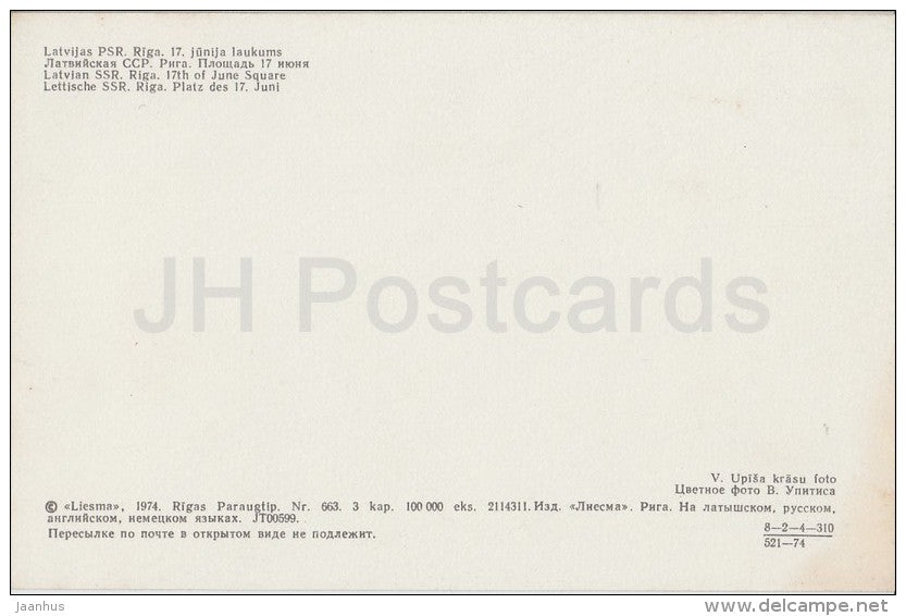 17th of June square - bus - car Zhiguli , Moskvitch - Old Town - Riga - 1974 - Latvia USSR - unused