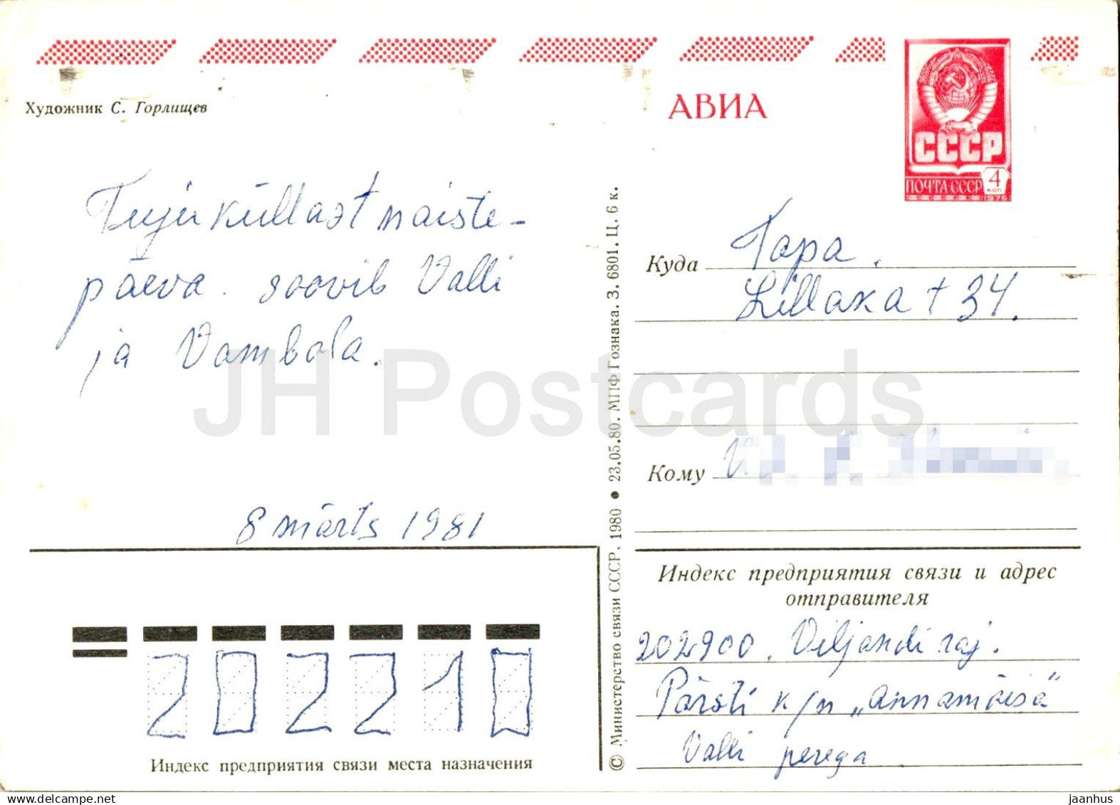 8 March Greeting Card - Tulips - illustration - postal stationery - AVIA - 1980 - Russia USSR - used