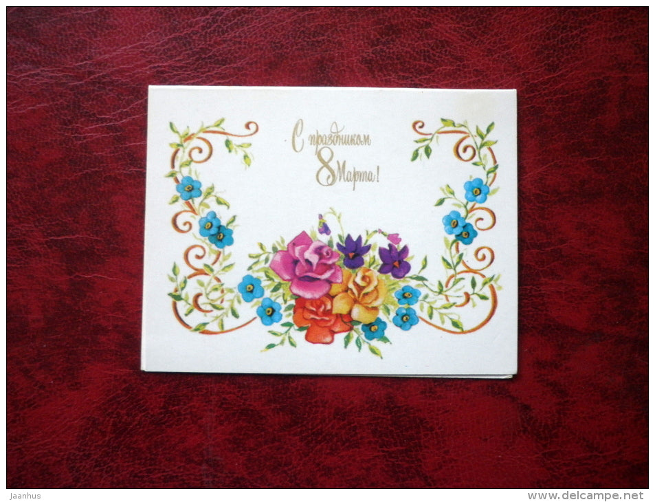 8 March - International Womens Day - roses - flowers - mini-card - 1983 - Russia - USSR - unused