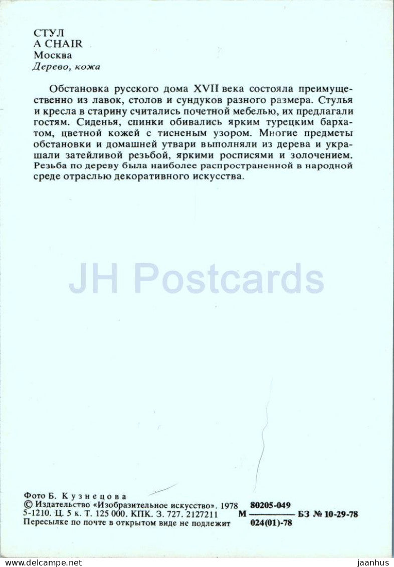 A Chair - The Museum of applied art in The Moscow Kremlin - 1978 - Russia USSR - unused