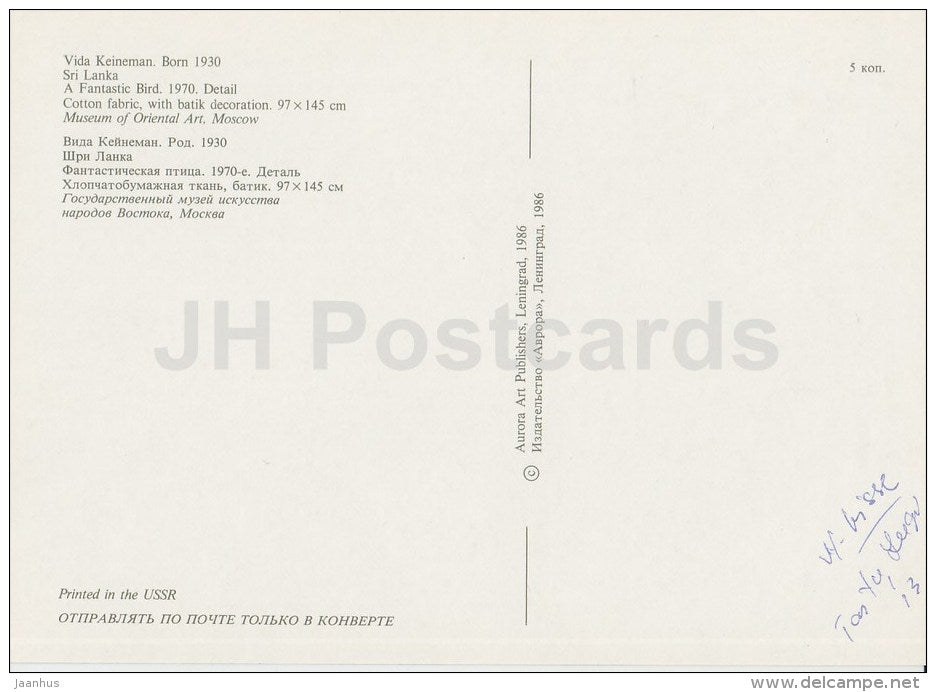 A Fantastic Bird by Vida Keineman , Sri Lanka - Oriental Art - 1986 - Russia USSR - unused