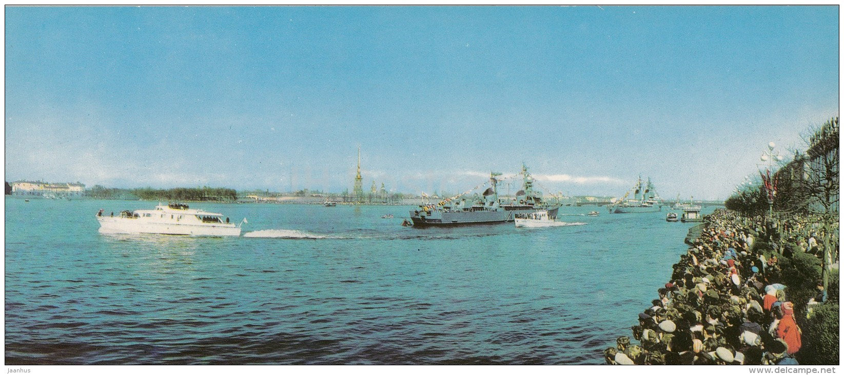 a festive occasion on the USSR Navy Day on the Neva - warship - Leningrad - St. Petersburg - 1967 - Russia USSR - unused