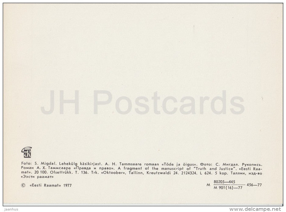a fragment of the manuscript of Truth and Justice - Estonian writer A. H. Tammsaare - 1977 - Estonia USSR - unused