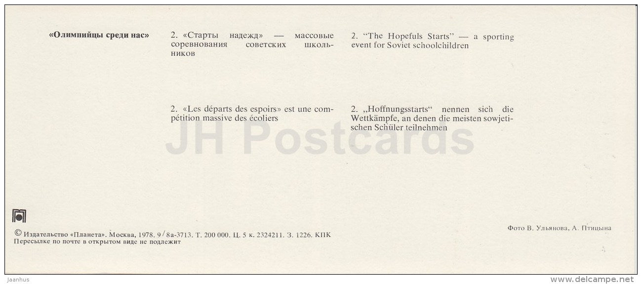 A Hopefuls Starts , sporting event for Soviet schoolchildren - long jump - Olympic Venues - 1978 - Russia USSR - unused