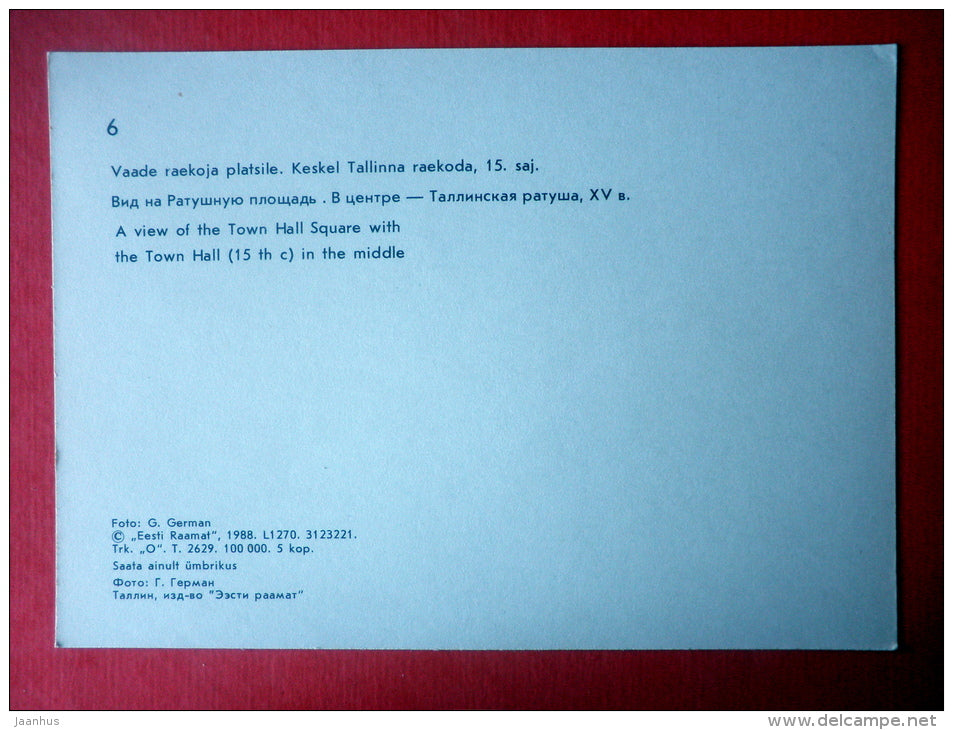 A view of the Town Hall Square with the Town Hall , XV century - The Tallinn Town Museum - 1988 - Estonia USSR - unused