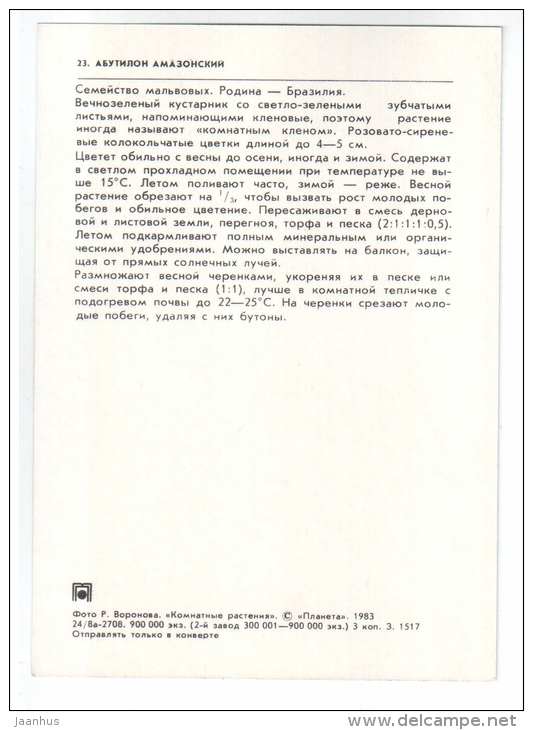 Abutilon amasonicum - houseplants - flowers - 1983 - Russia USSR - unused