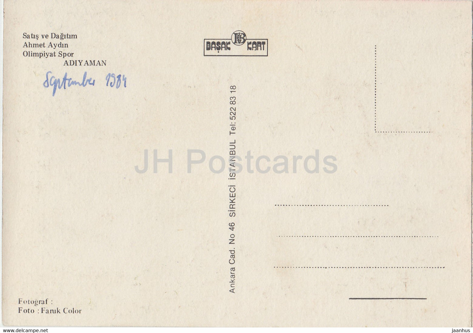 Adiyaman - Sales and Distribution Ahmet Aydin - Olimpiyat spor - multiview - 1984 - Turkey - used