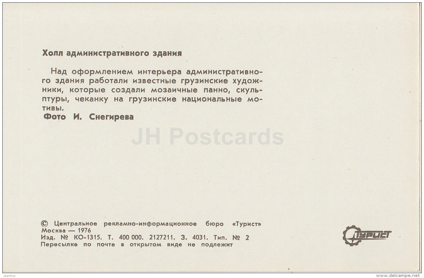 Administrative Building Hall - New Athos Cave - Novyi Afon - Abkhazia - Turist - 1976 - Georgia USSR - unused