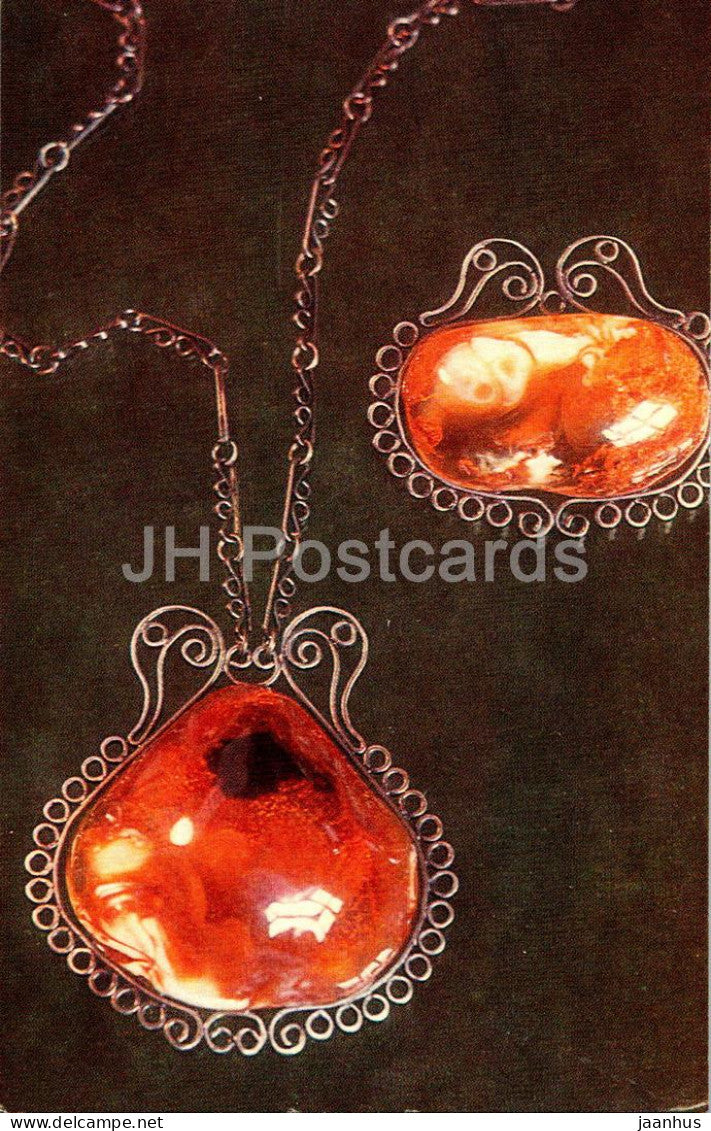 adornment by G. Ivanova - amber - metal - applied art - Latvian art - 1963 - Latvia USSR - unused