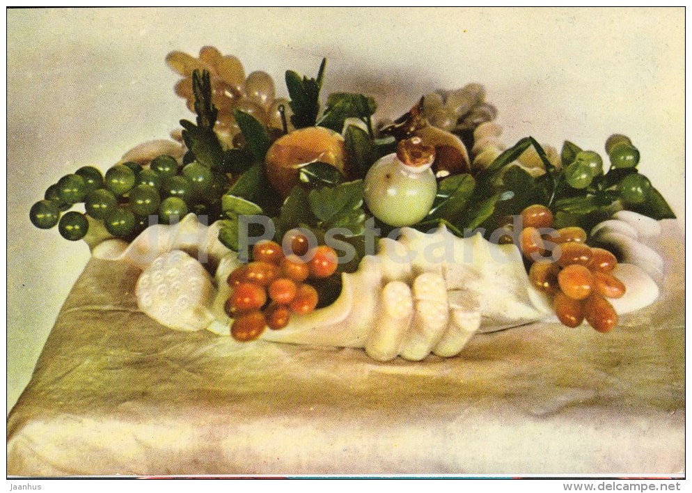 Agate and Jade Fruits - Peking Art Handicrafts - Chinese art - old postcard - China - unused