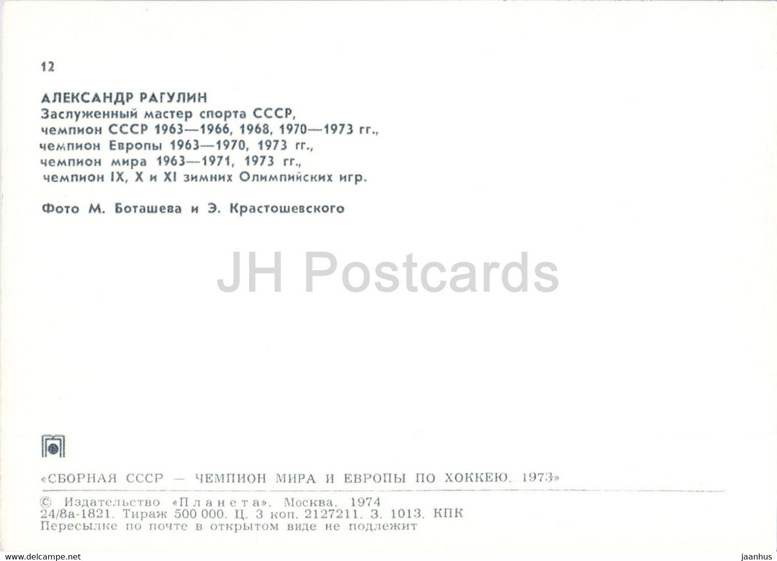 Alexander Ragulin - USSR ice hockey team - world champion 1973 - 1974 - Russia USSR - unused