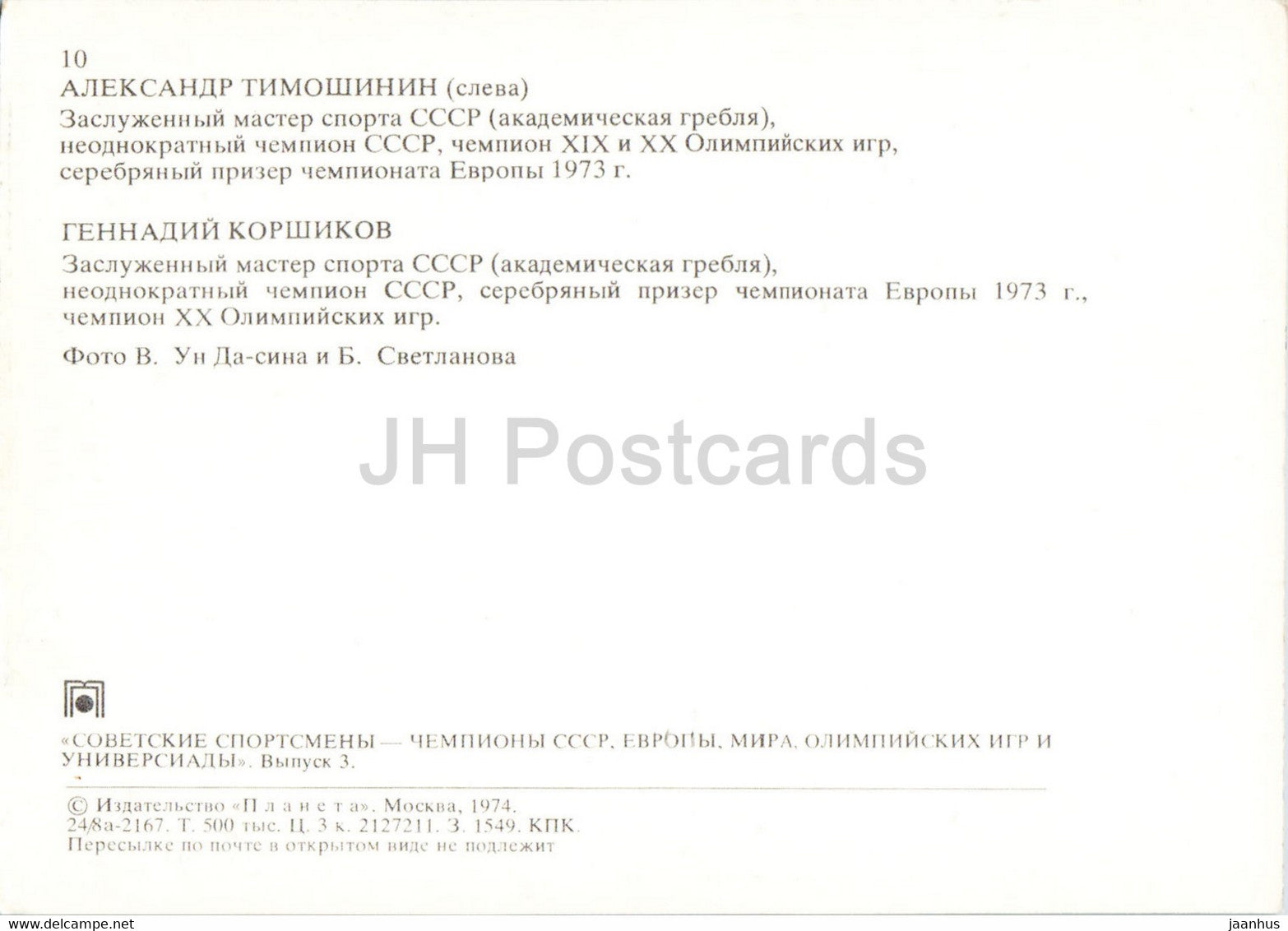 Alexander Timoshinin - Gennady Korshikov - rowing - Soviet champions - sports - 1974 - Russia USSR - unused