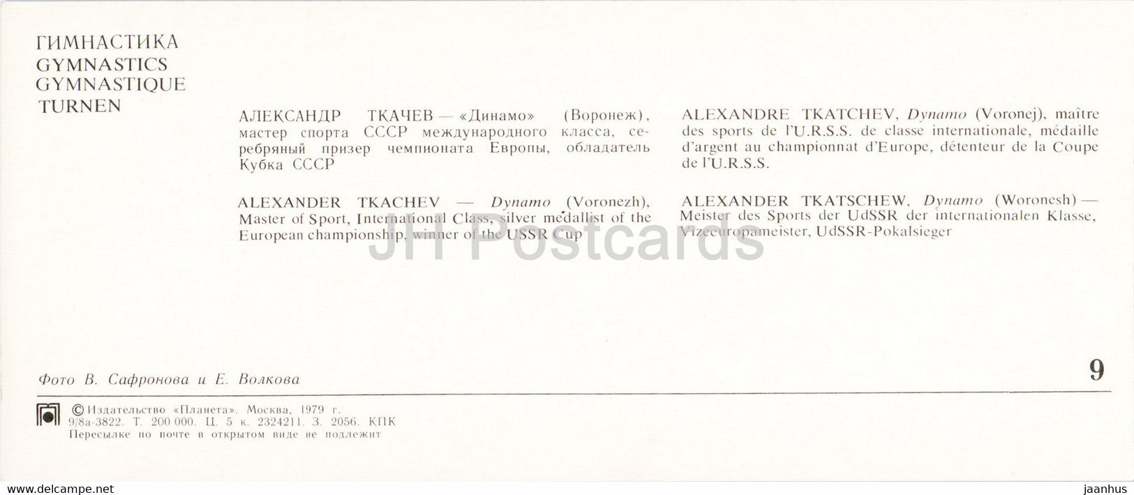 Alexander Tkachev - Gymnastics - sport - 1979 - Russia USSR - unused