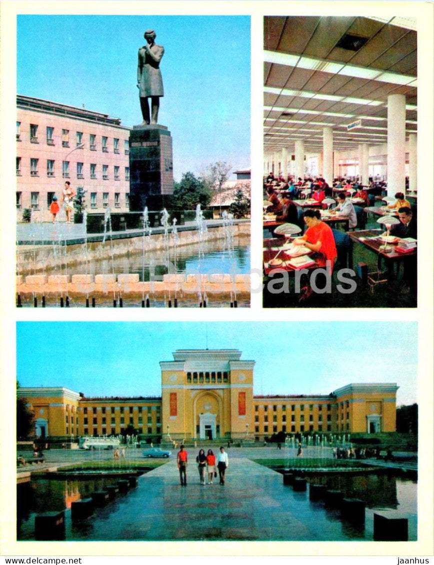 Almaty - Alma-Ata - monument to Chokan Valikhanov - Pushkin Library - 1974 - Kazakhstan USSR - unused