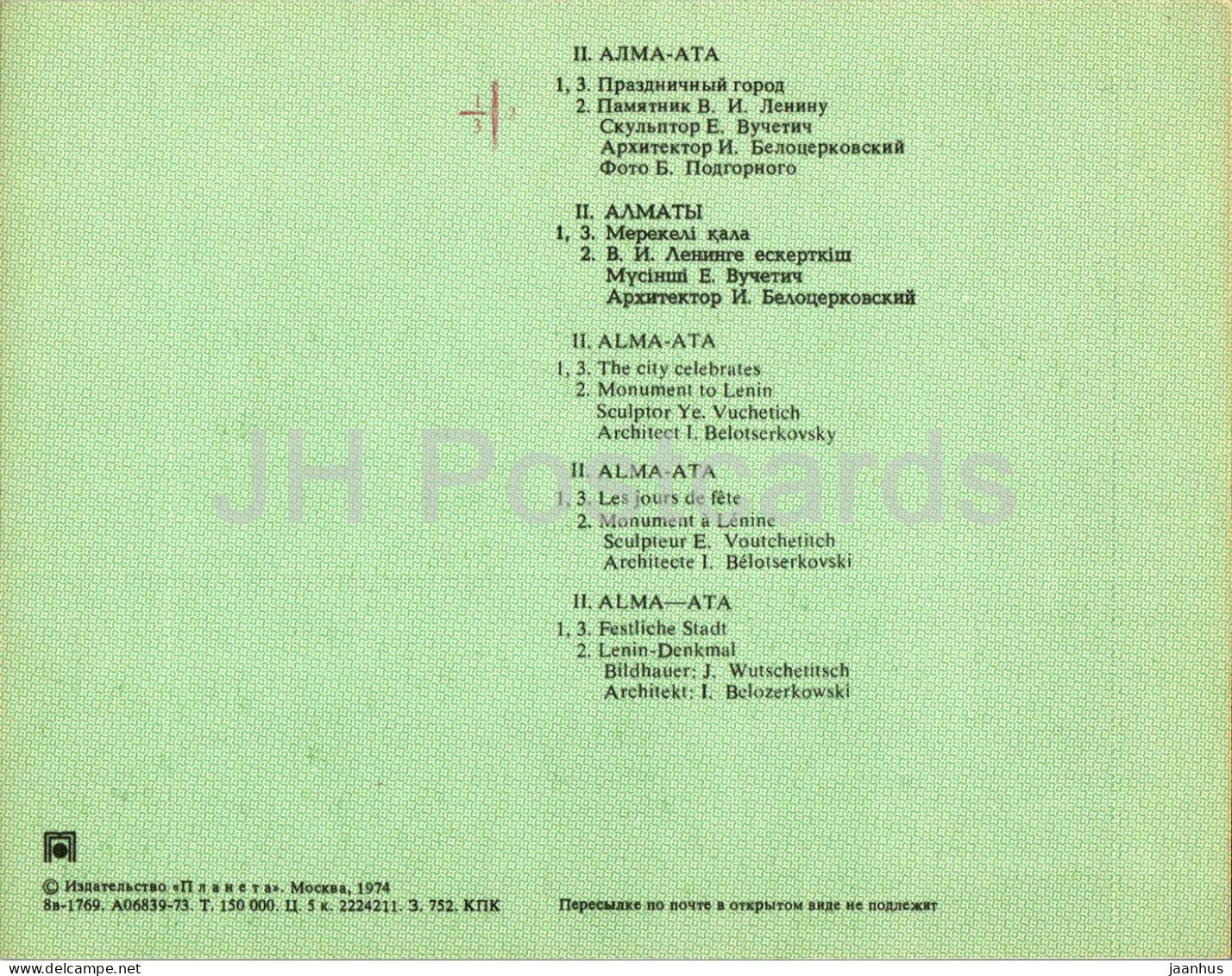 Almaty - Alma-Ata - the city celebrates - monument to Lenin - 1974 - Kazakhstan USSR - unused