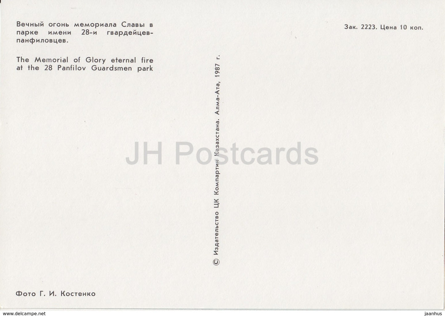 Almaty - Alma Ata - The Memorial of Glory eternal fire - 1987 - Kazakhstan USSR - unused