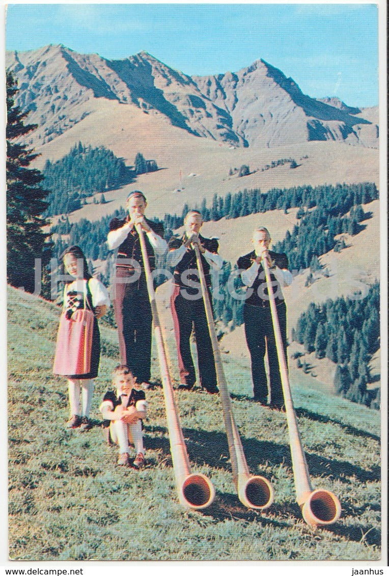 Alphornblaser im Berner Oberland - folk costumes - 98904 - Switzerland - 1957 - used