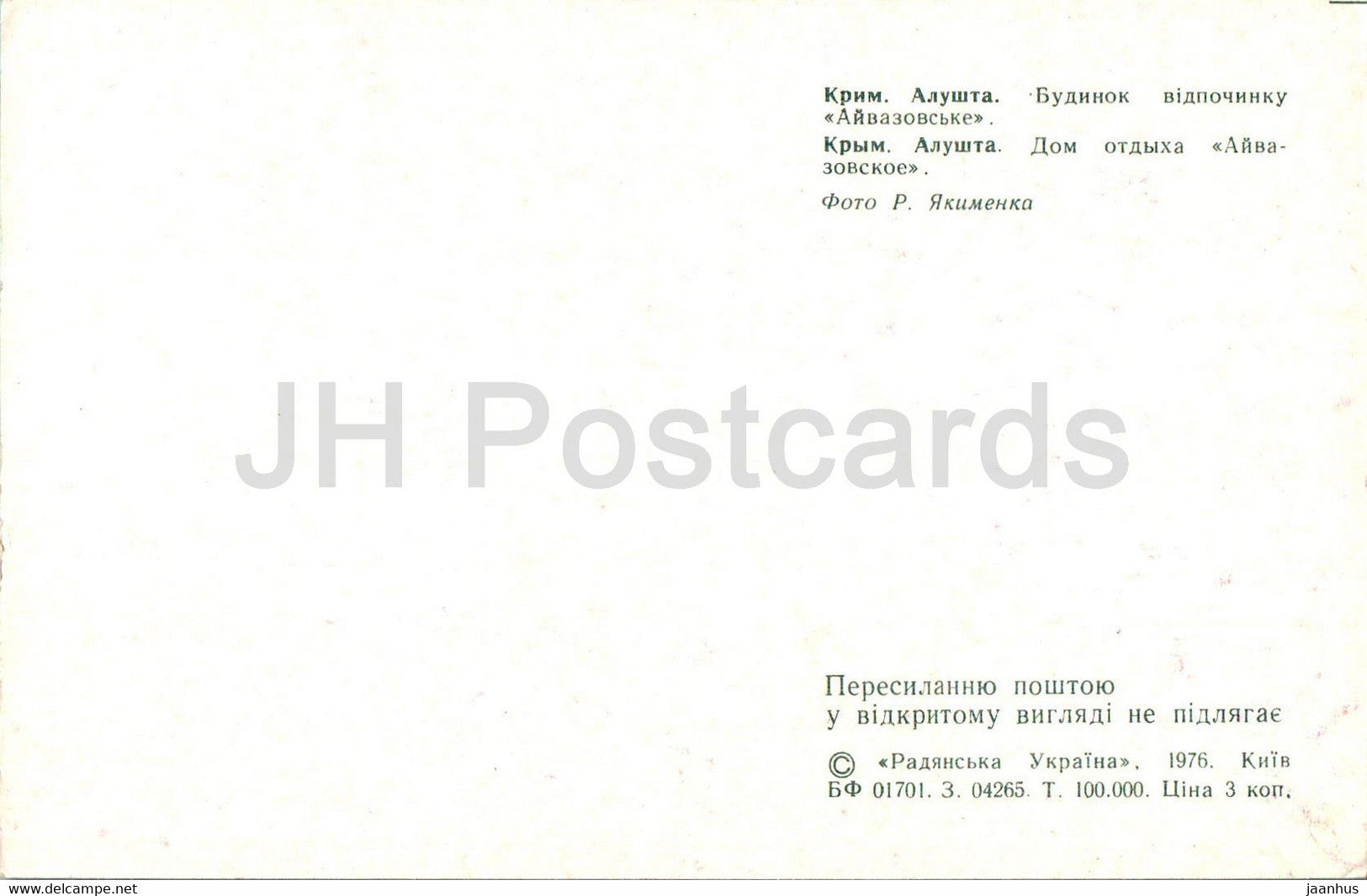 Alushta - Aivazovskoye Holiday House - 1976 - Ukraine USSR - unused