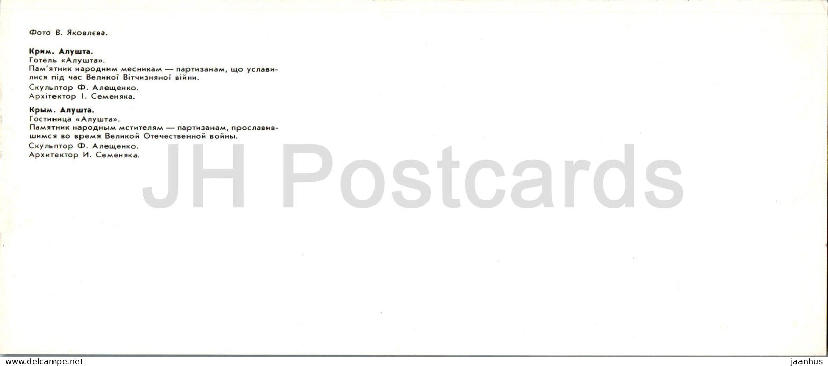 Alushta - hotel Alushta - monumet to partisans of WWII - milirary monument - Crimea - Ukraine USSR - unused
