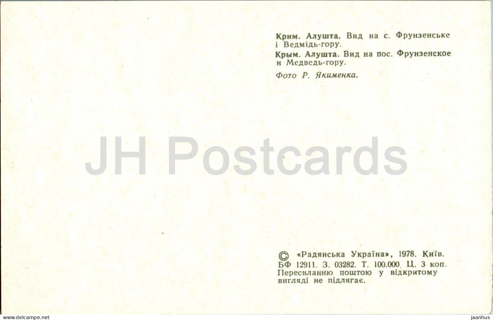 Alushta - view of the village of Frunzenskoye and mountain Medved Gora - Crimea - 1978 - Ukraine USSR - unused