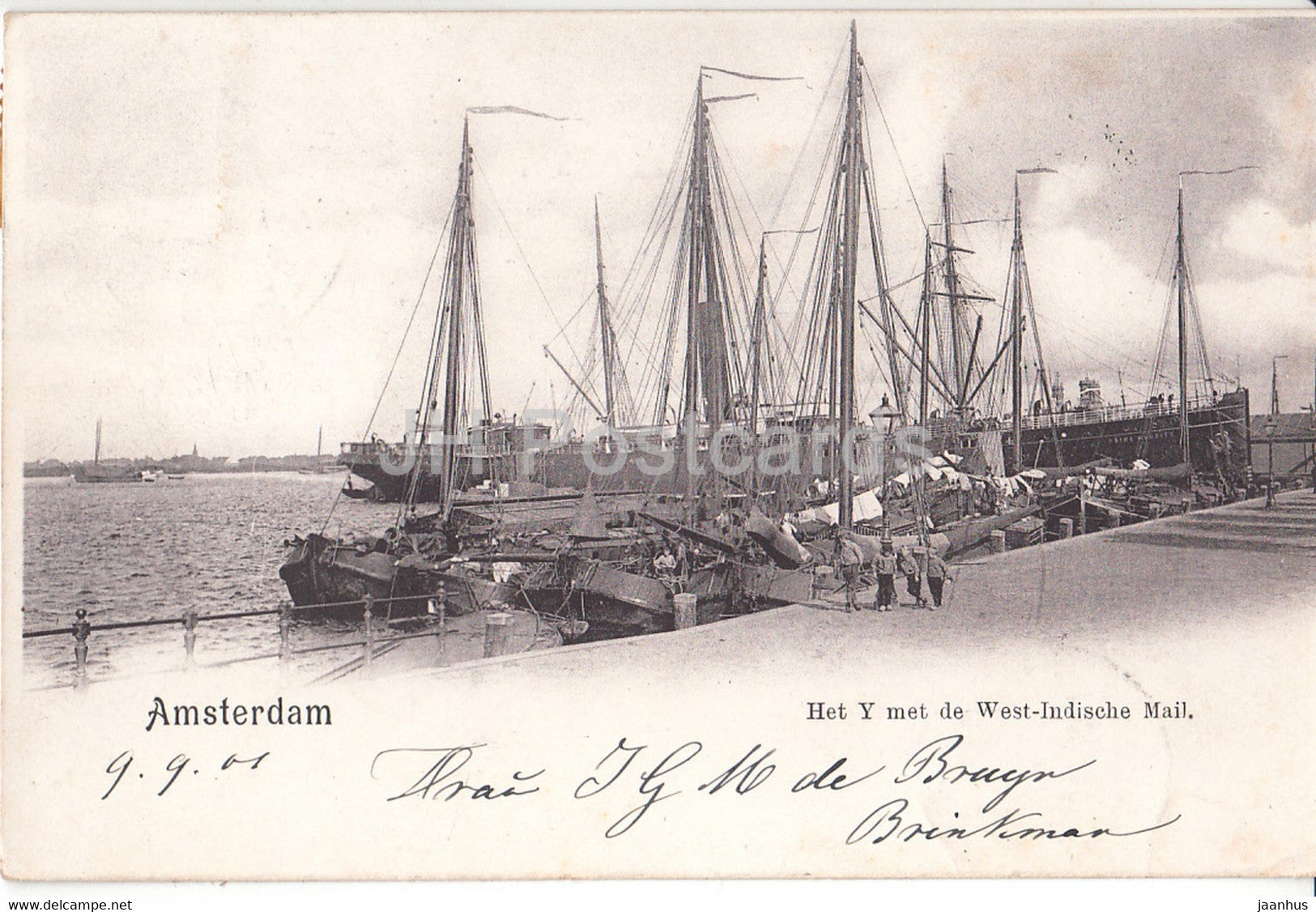 Amsterdam - Het Y met de West Indische Mail - ship - old postcard - 1901 - Netherlands - used