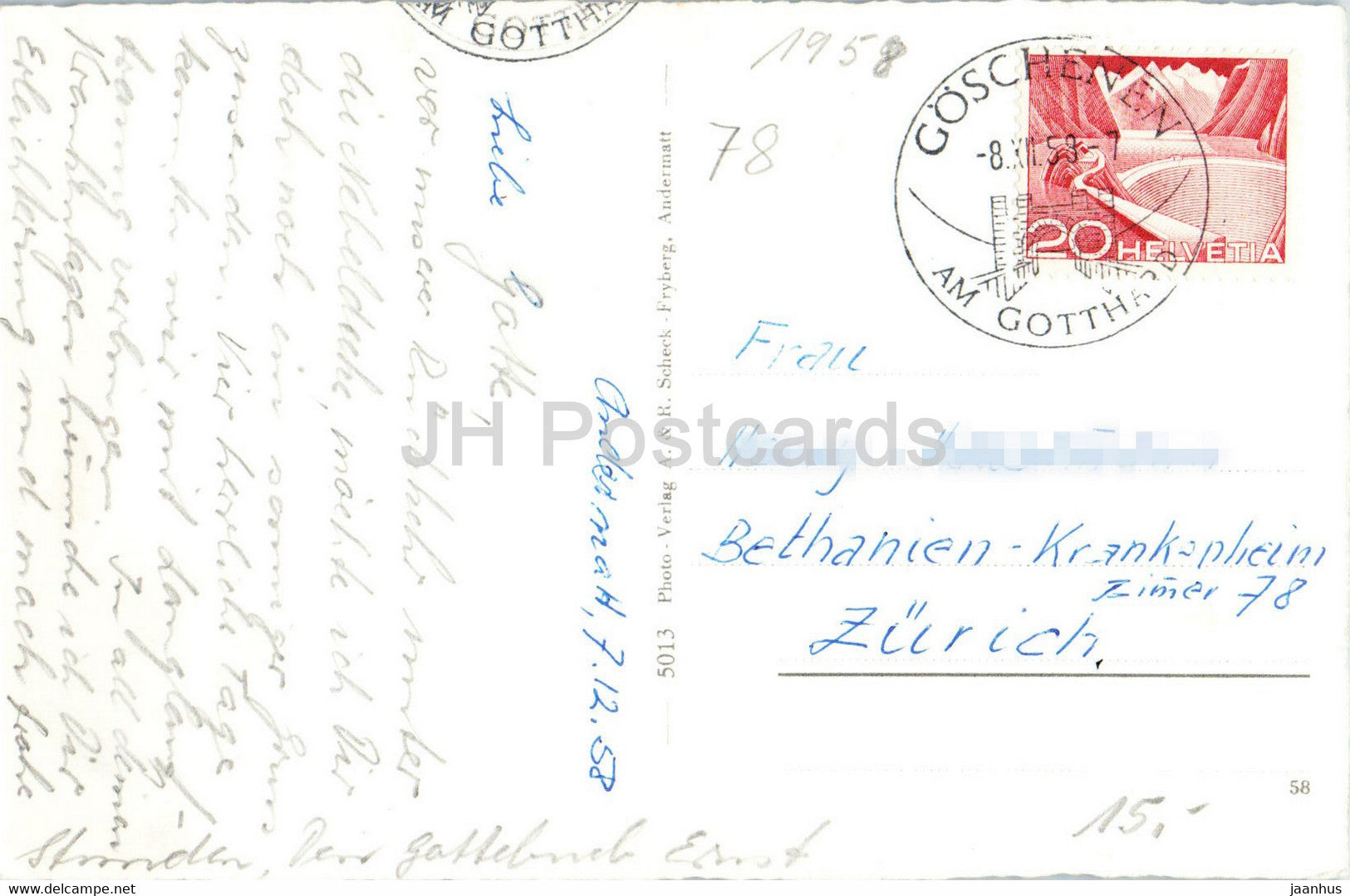 Andermatt mit Furka Oberalp Bahn - railway - train - 5013 - old postcard - 1958 - Switzerland - used