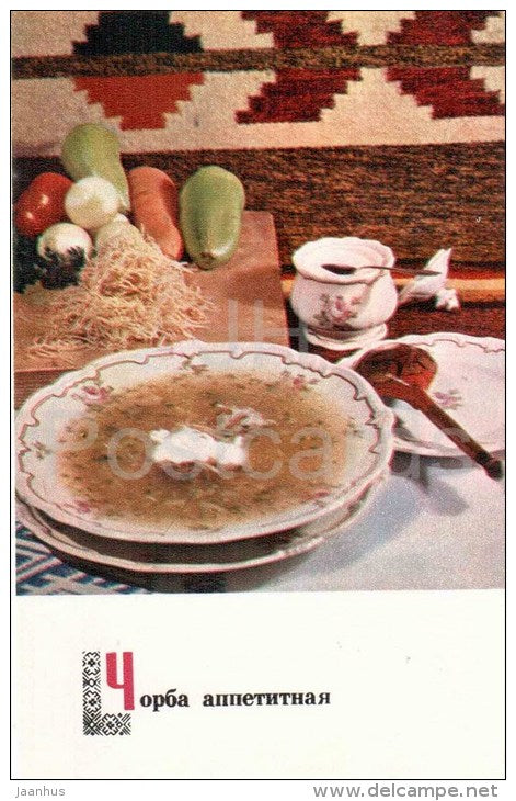 appetizing ciorba - soup - dishes - Moldova - Moldavian cuisine - 1974 - Russia USSR - unused