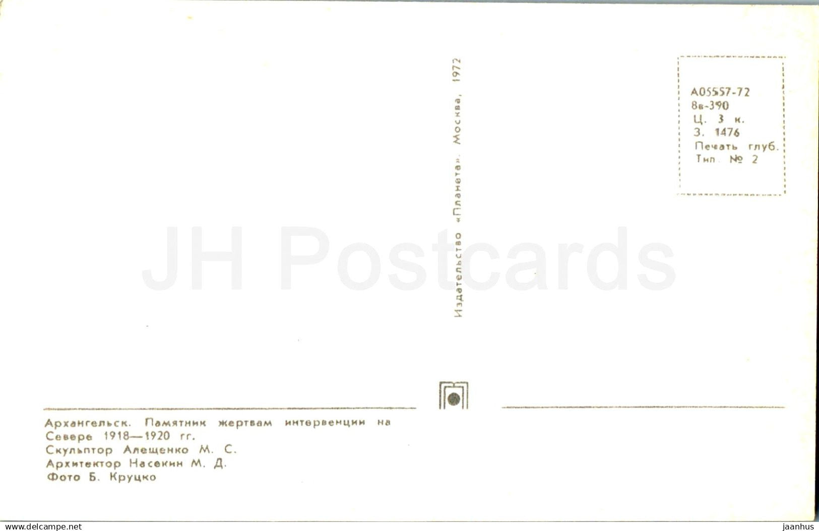 Arkhangelsk - Monument to the victims of the intervention in the North - 1972 - Russia USSR - unused