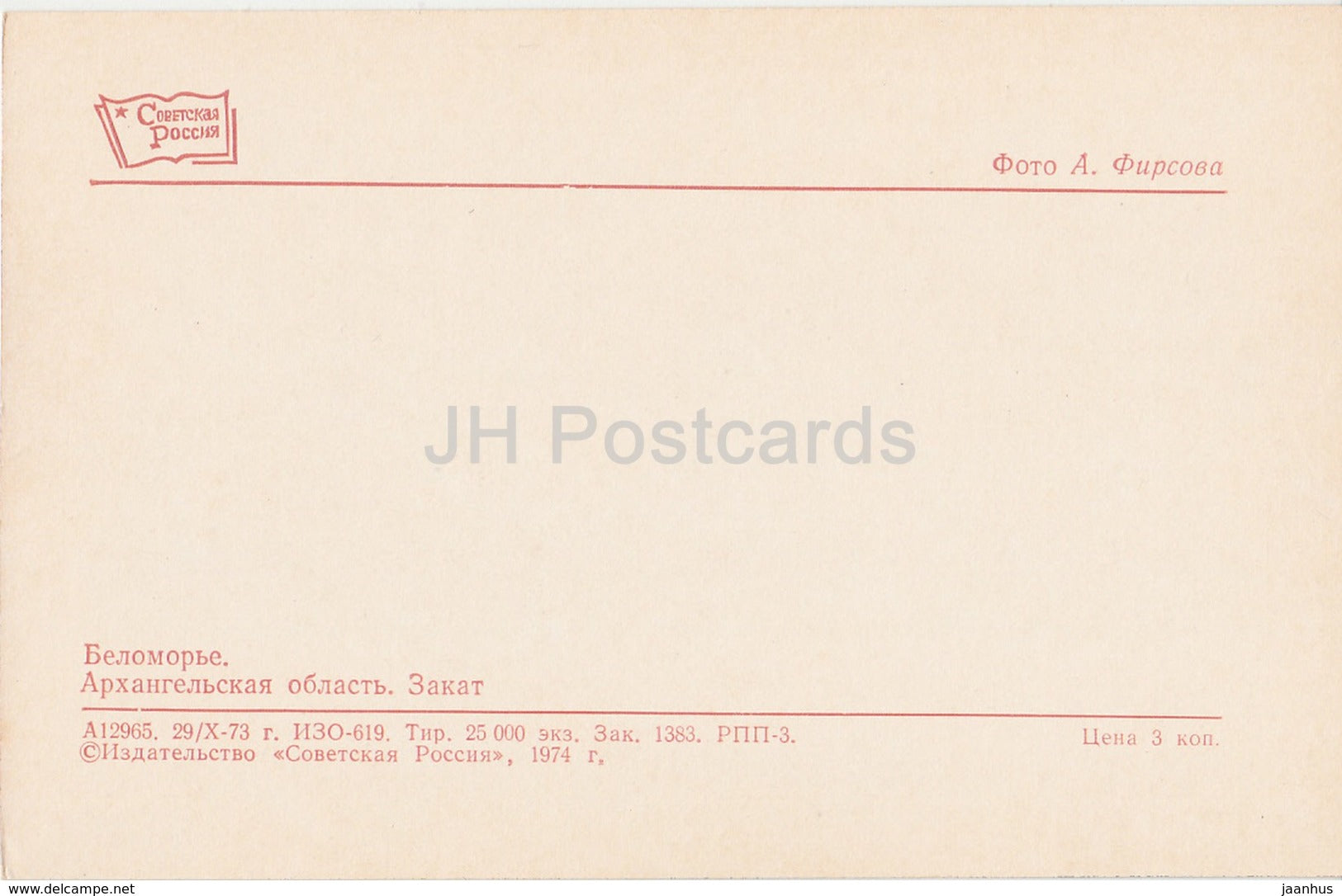 Arkhangelsk Oblast - region - sunset - White Sea Region - 1974 - Russia USSR - unused
