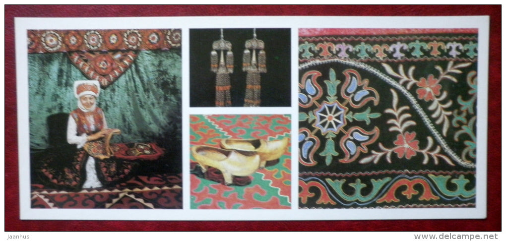 artifacts by folkscraftsmen of Kyrgyzstan - shoes - traditional pattern - 1984 - Kyrgyzstan USSR - unused