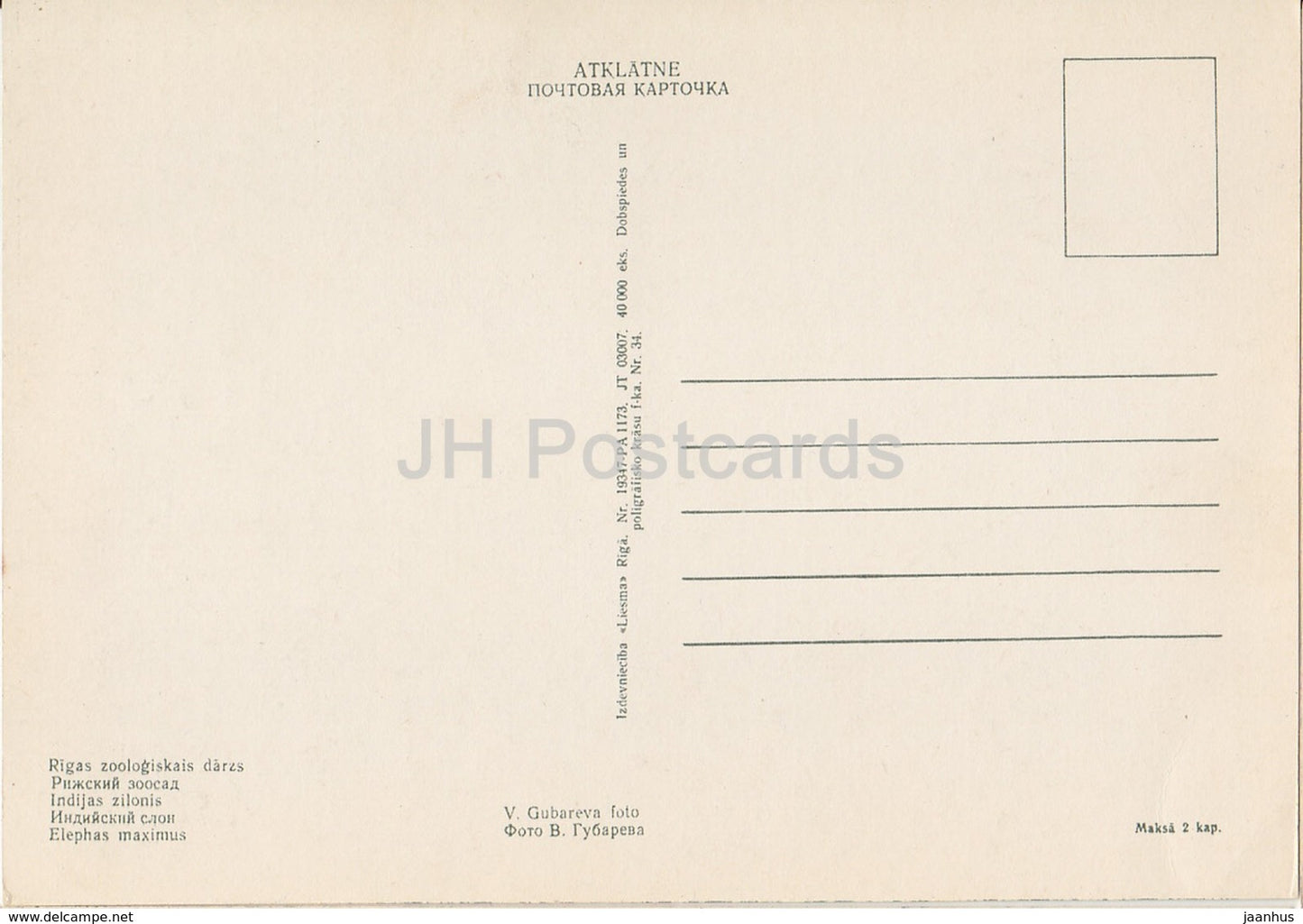 Asian elephant - Elephas maximus - Riga Zoo - old postcard - Latvia USSR - unused