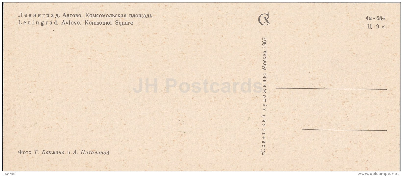 Avtovo . Komsomol Square - Leningrad - St. Petersburg - 1967 - Russia USSR - unused