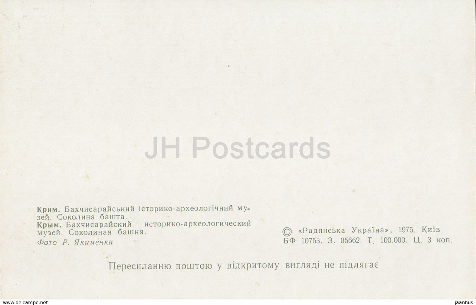 Bakhchysarai Museum - Sokolinaya (Falcon) Tower - 1975 - Ukraine USSR - unused