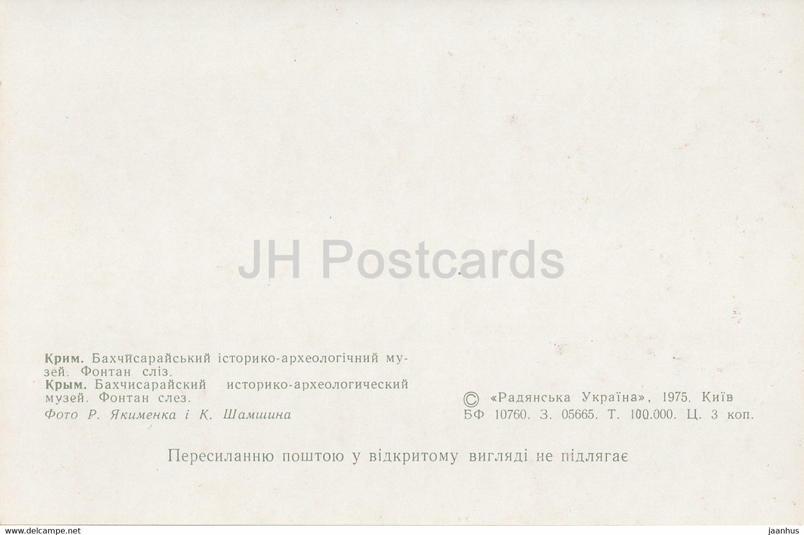 Bakhchysarai Museum - Tears Fountain - 1975 - Ukraine USSR - unused