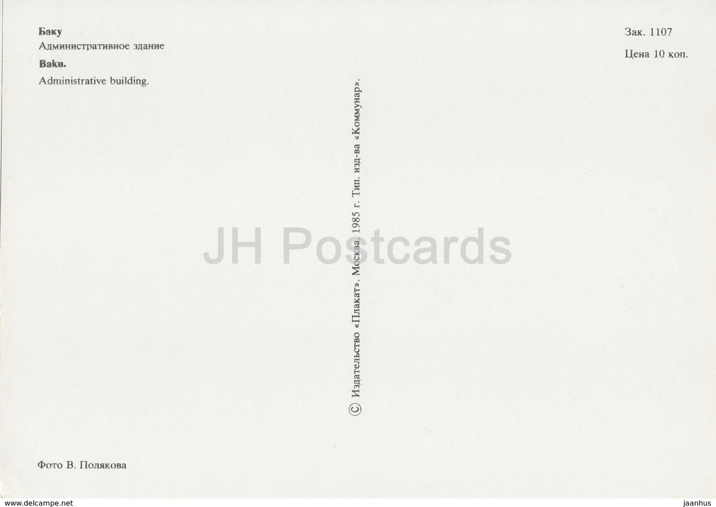 Baku - Administrative Building - 1985 - Azerbaijan USSR - unused