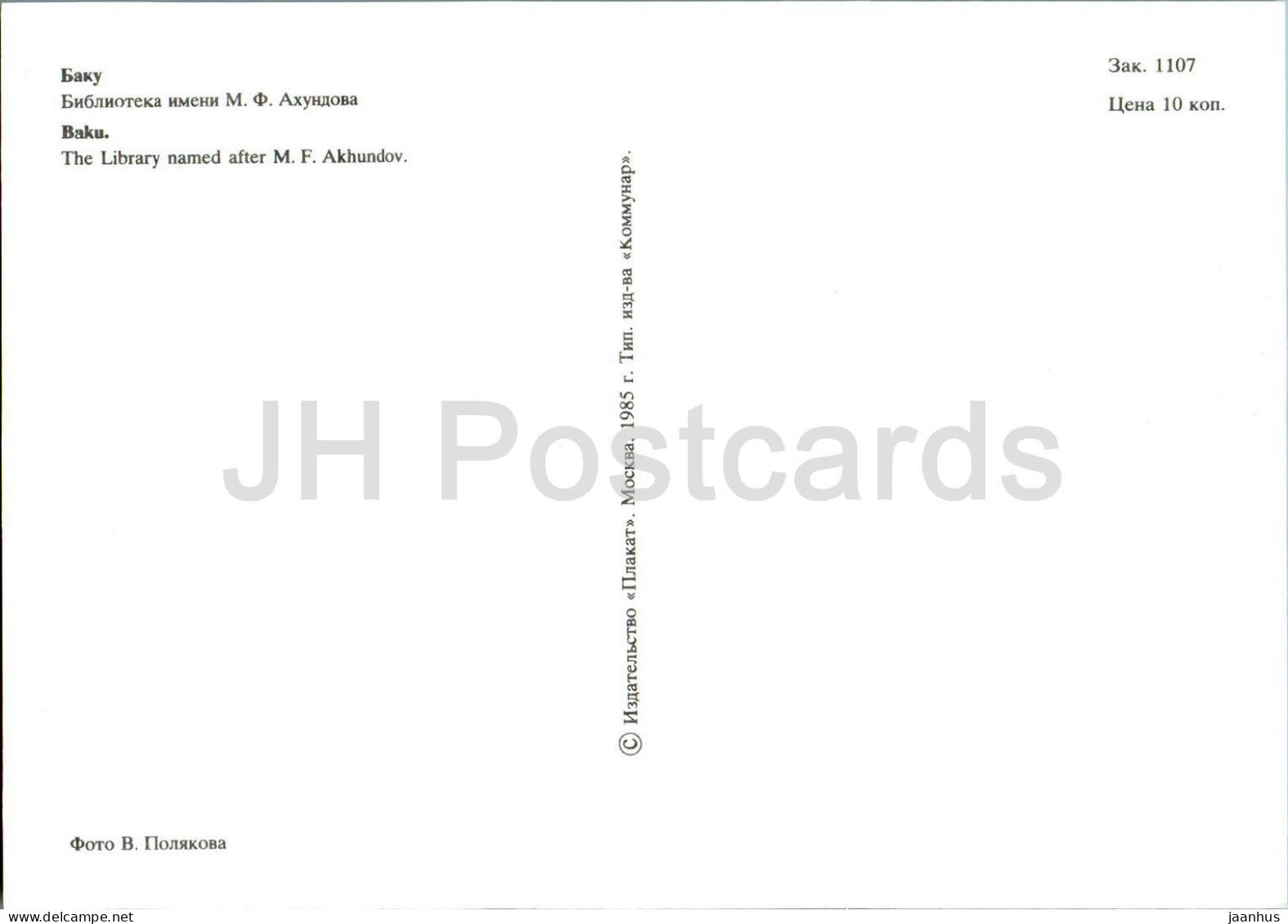Baku - Akhundov Library - car - 1985 - Azerbaijan USSR - unused