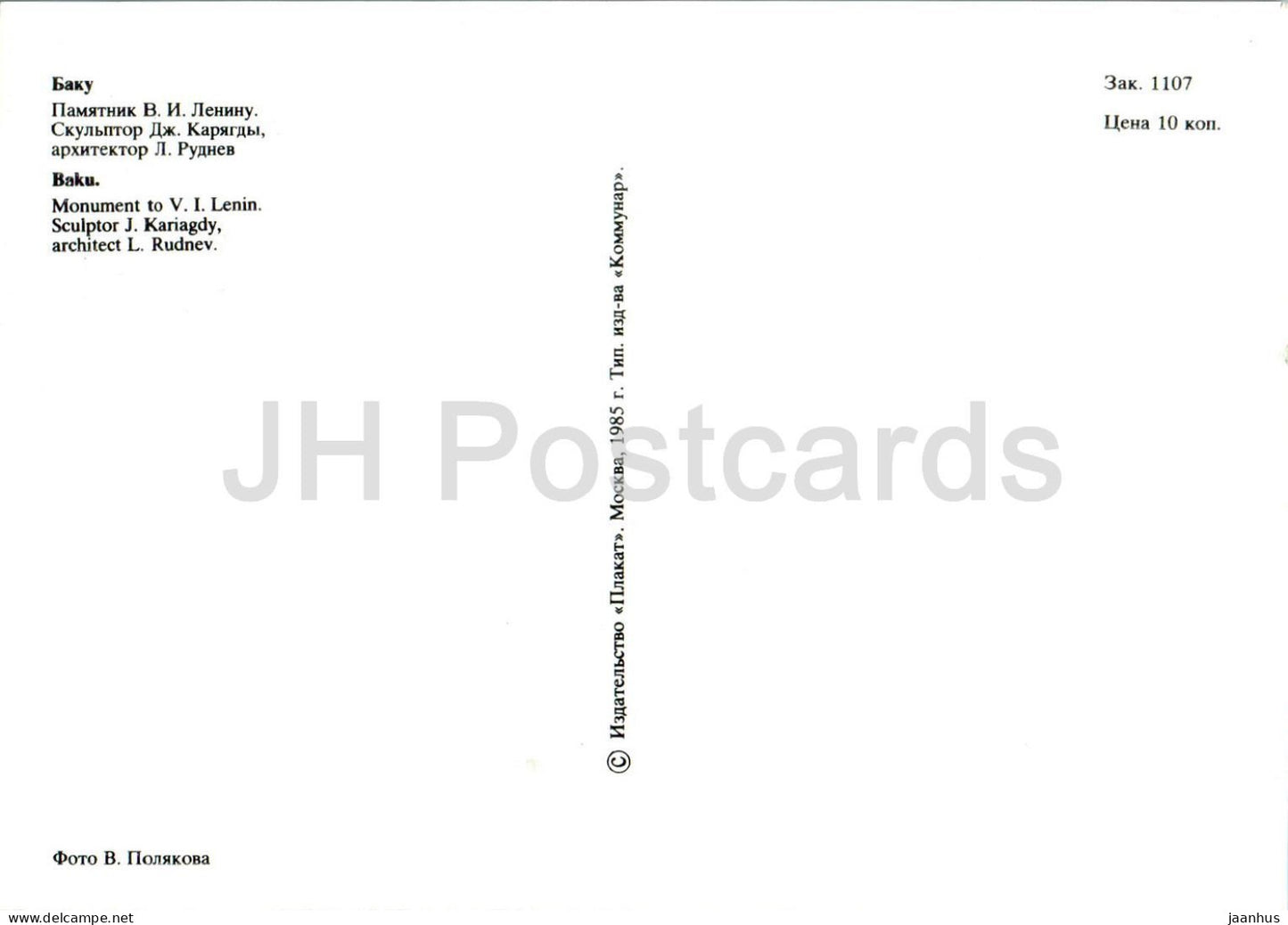Baku - monument to Lenin - 1985 - Azerbaijan USSR - unused