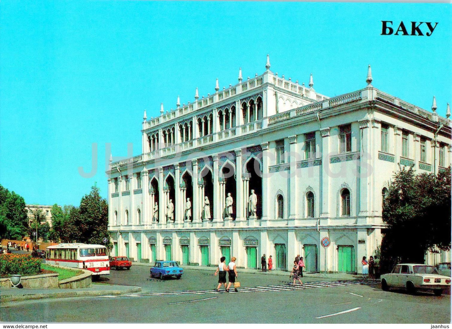 Baku - Nizami museum of Azerbaijan Literature - car Zhiguli - bus LAZ - 1985 - Azerbaijan USSR - unused