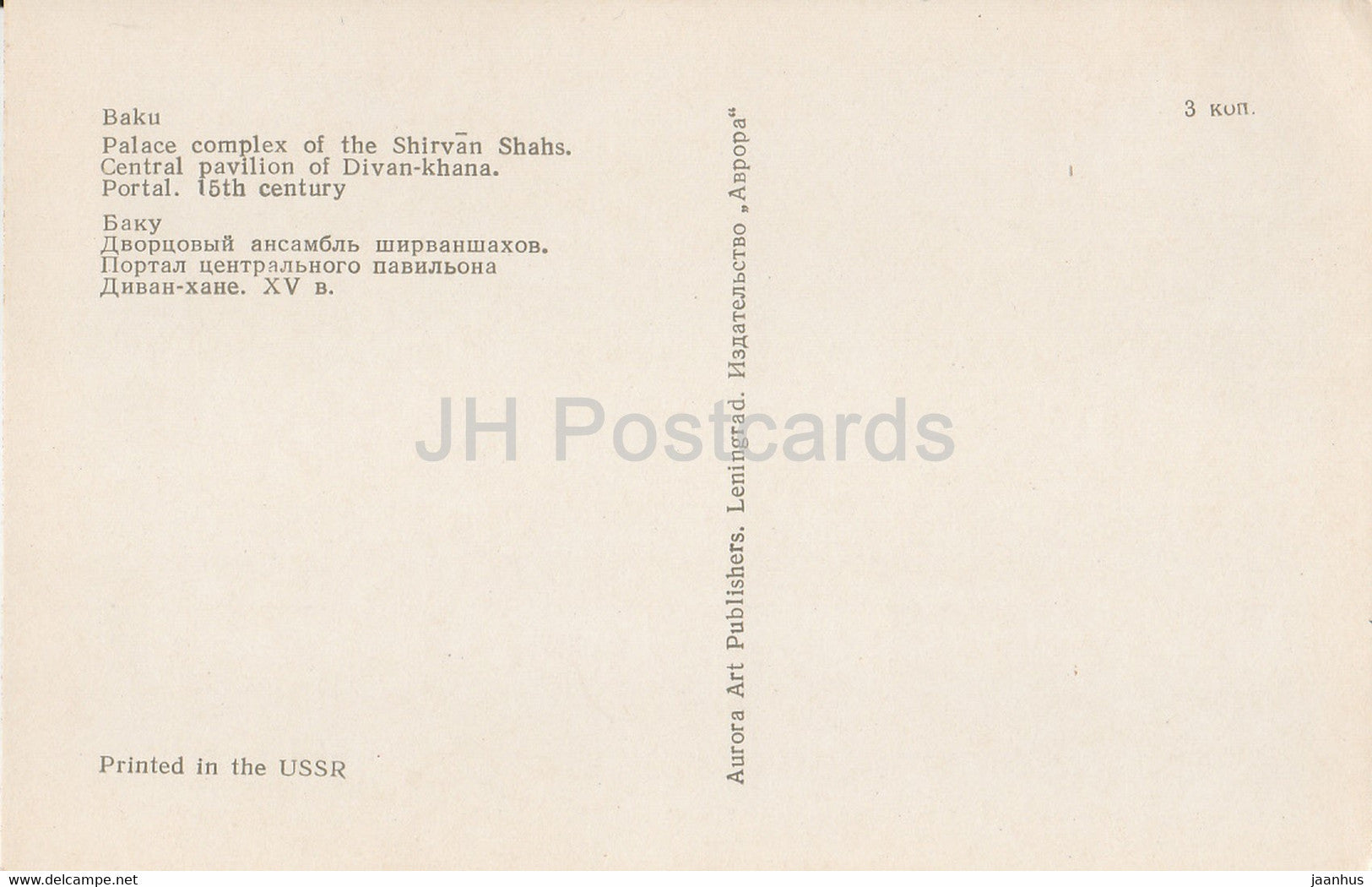 Baku - Palace complex of the Shirvan Shahs - central pavilion of Divan-Khana - 1974 - Azerbaijan USSR - unused